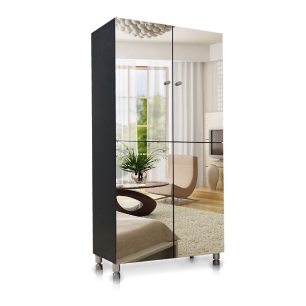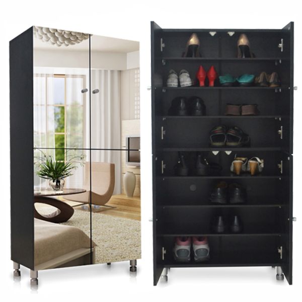 Black Melamine MDF 8 Layer Nordic Mirrored Shoe Cabinet Images |