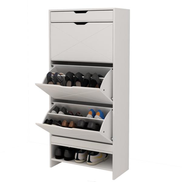 Three Layer MDF Shoe Wooden Cabinet With Shoe Rack Door Space Saver Images |